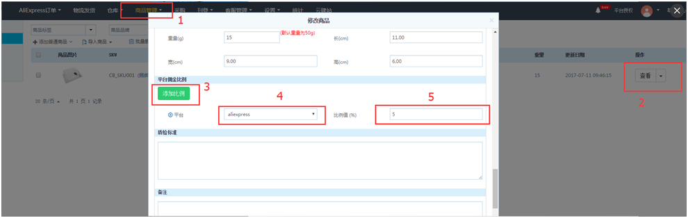 由于暂只支持cdcdiscount、wish、ebay直接从平台上获取佣金,所以其它平台支持在商品库设置佣金比例。